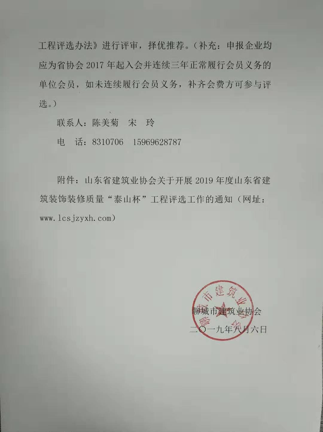 關(guān)于轉(zhuǎn)發(fā)《山東省建筑業(yè)協(xié)會關(guān)于開展2019年度山東省建筑裝飾裝修 質(zhì)量“泰山杯”工程評選工作的通知》的通知