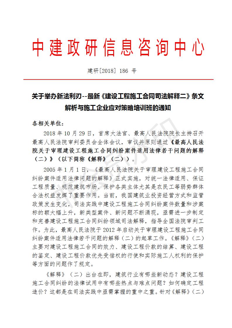 關于舉辦新法利刃--最新《建設工程施工合同司法解釋二》條文                       解析與施工企業(yè)應對策略培訓班的通知
