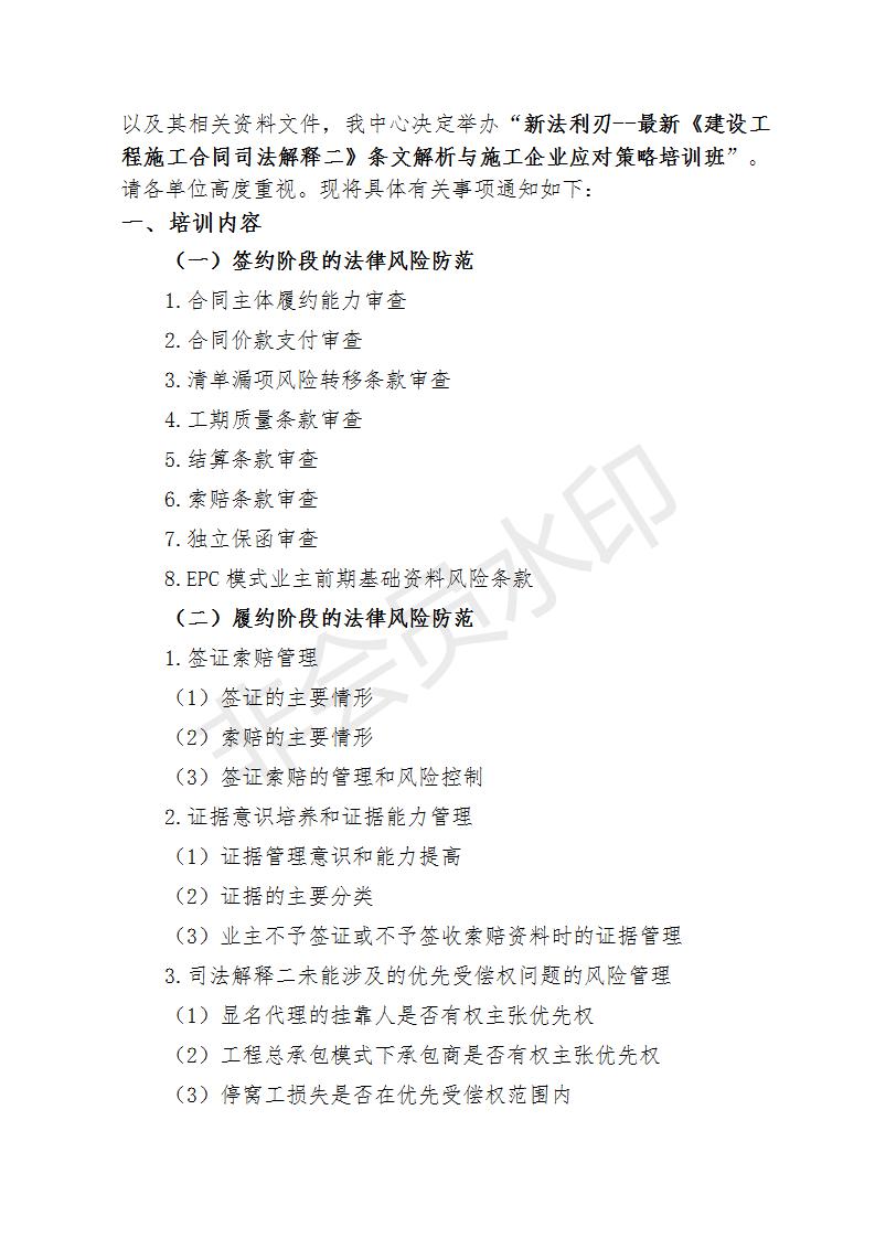 關于舉辦新法利刃--最新《建設工程施工合同司法解釋二》條文解析與施工企業(yè)應對策略培訓班的通知